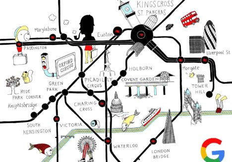 A series of illustrations to accompany a motion graphics film for the Google London headquarters new building at Kings Cross.